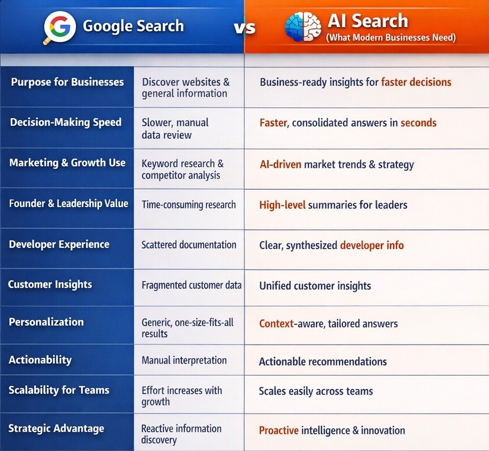 Google and traditional search engines were originally designed to help users find information by presenting lists of links. While this model worked well in the early days of the internet, it no longer fully meets the expectations of modern information seekers who prioritize speed, precision, and relevance. Today’s users don’t just want access to information, they want immediate, actionable answers tailored to their specific questions. Manually navigating multiple web pages and piecing together insights from different sources feels slow and inefficient in a world shaped by AI-powered experiences.