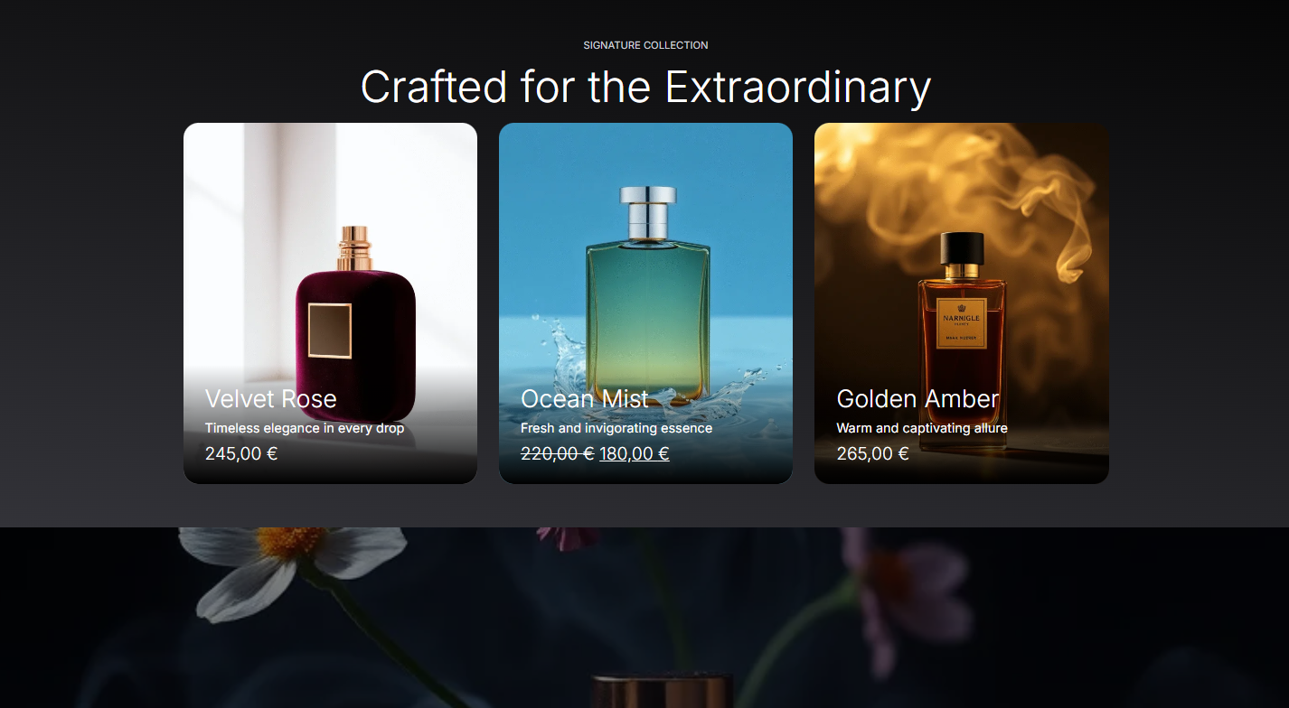 We built this elegant e-commerce website to embody the luxurious essence of Noir Elegance — a brand that celebrates mystery, confidence, and allure. With an intoxicating blend of black orchid, velvet amber, and midnight jasmine, every detail of the site reflects refinement and timeless beauty.