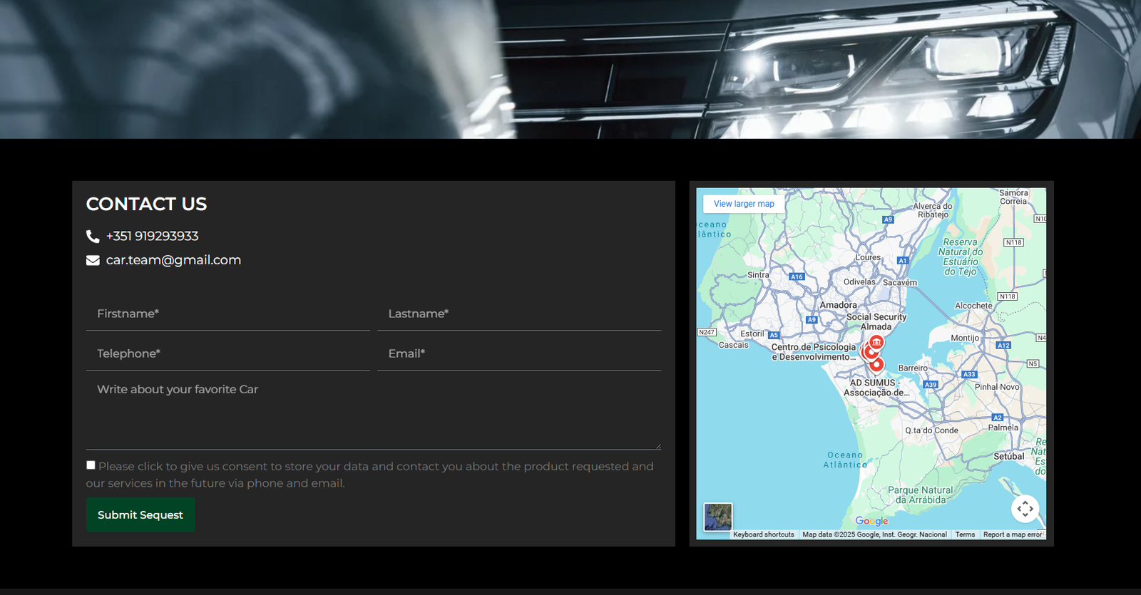 When a user clicks on a car, they are directed to a dedicated single page where they can submit a request through a form. Upon submission, the website owner receives an email containing the user’s details along with the submitted request, enabling direct communication with the interested buyer.